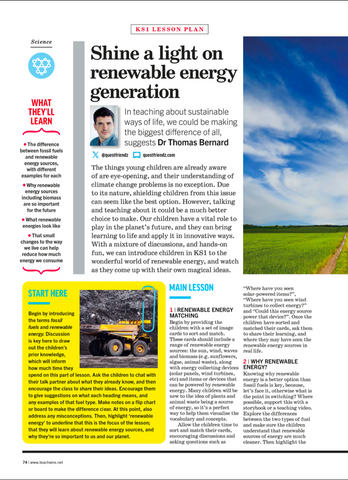 Shine a Lighting on Renewable Energy Generation KS1 Lesson Plan - Teach Primary V. 18 No.1