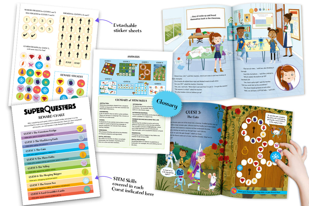 Discover your inner superhero in this unique interactive adventure story with hands-on activities, expertly designed in line with the Key Stage 1 Computing, Maths and Science National Curriculum to help children develop their STEM (Science, Technology, Engineering and Mathematics) skills in innovative new ways. Children 4 to 8 years old develop 12 different STEM skills such as problem solving, coding, debugging and reasoning as they solve each activity.